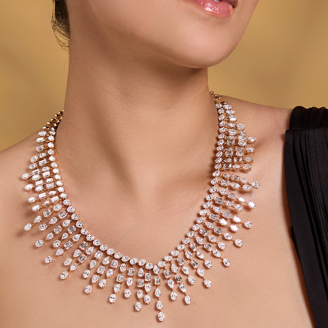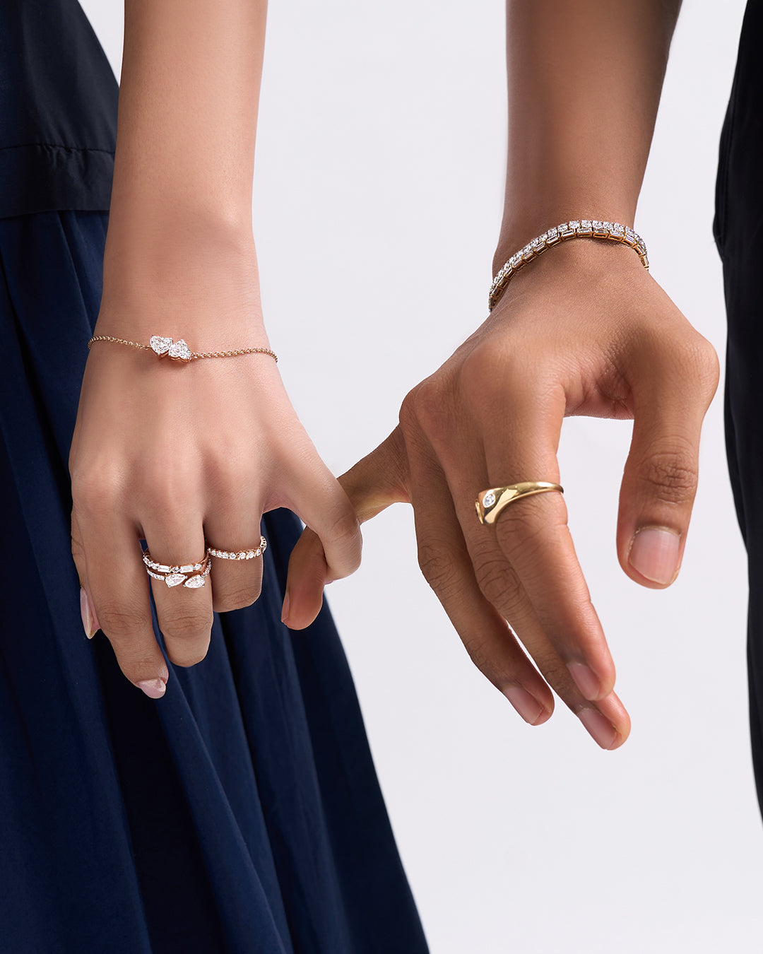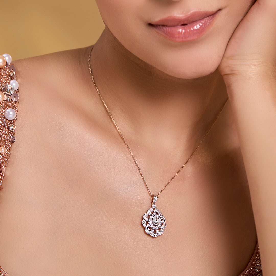 Blooming pink and white diamonds set in glowing gold. The collection is handcrafted to mirror the soft, luminous beauty of shades of Rose.
