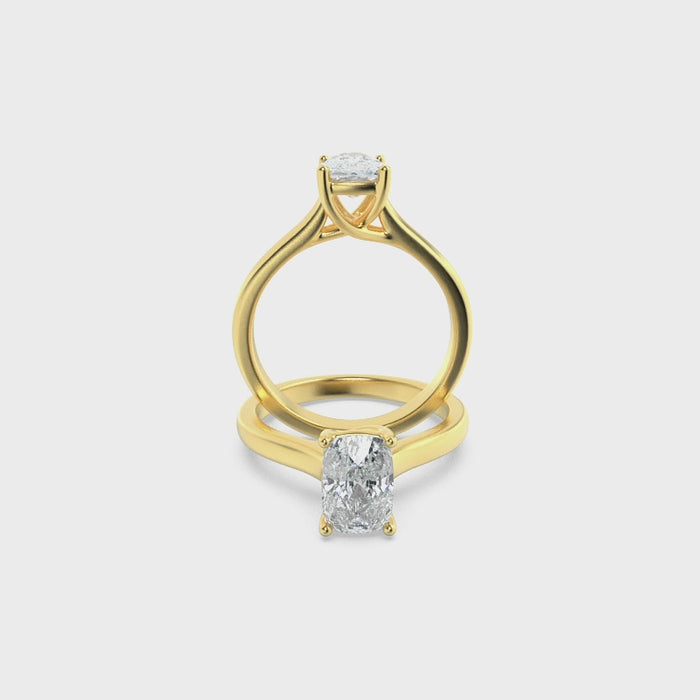 Defined by its soft-square silhouette, the cushion solitaire reflects both tradition and contemporary artistry. A jewel that symbolizes infinite grace, it adapts beautifully—whether worn as a striking engagement ring or styled as a luminous daily statement