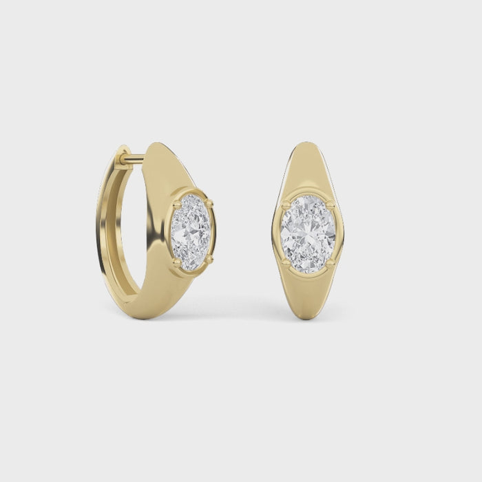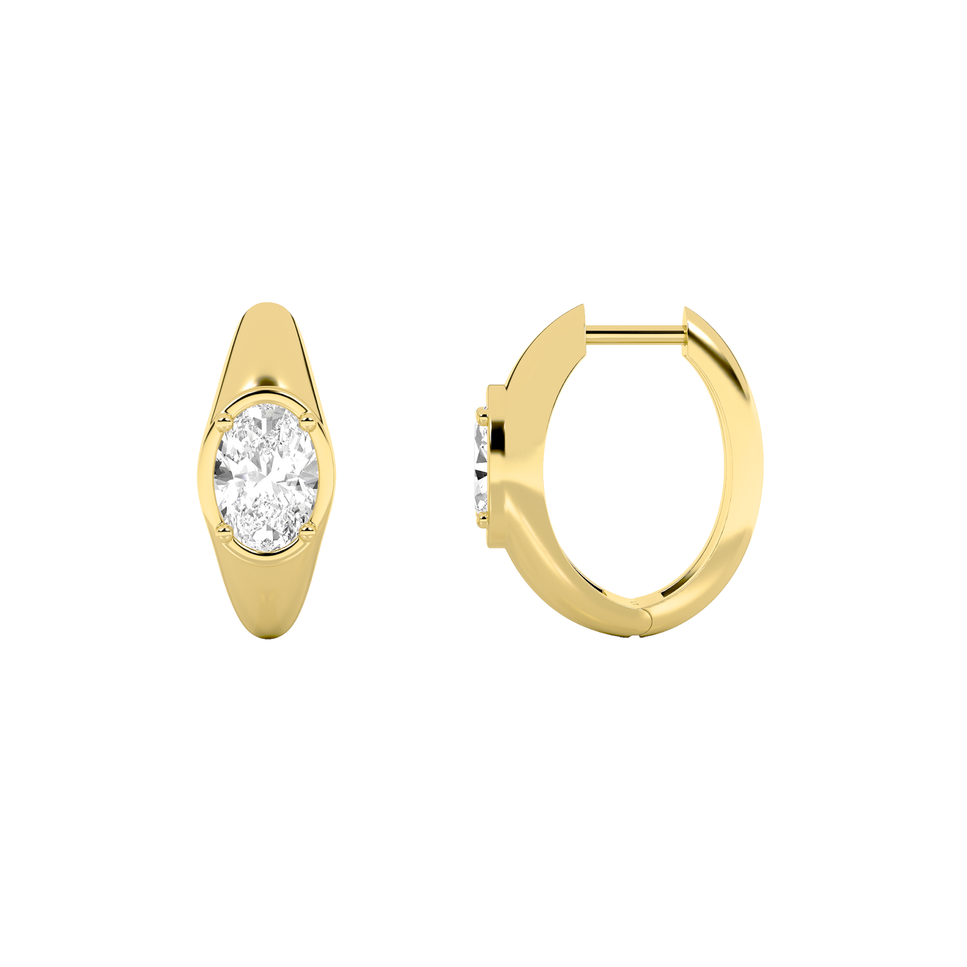 A luminous oval diamond sits gracefully at the heart of these hoops, capturing timeless sophistication. Designed to complement both office attire and evening ensembles, they radiate a charm that transitions effortlessly from day to night.
