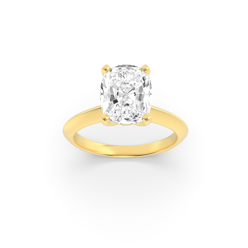 The cushion solitaire radiates gentle brilliance, held by a simple band that highlights its natural beauty. Inspired by enduring love, it is a jewel for proposals, anniversaries, or everyday symbols of commitment. Style with minimal gold accents for daywear or let it command attention at evening celebrations