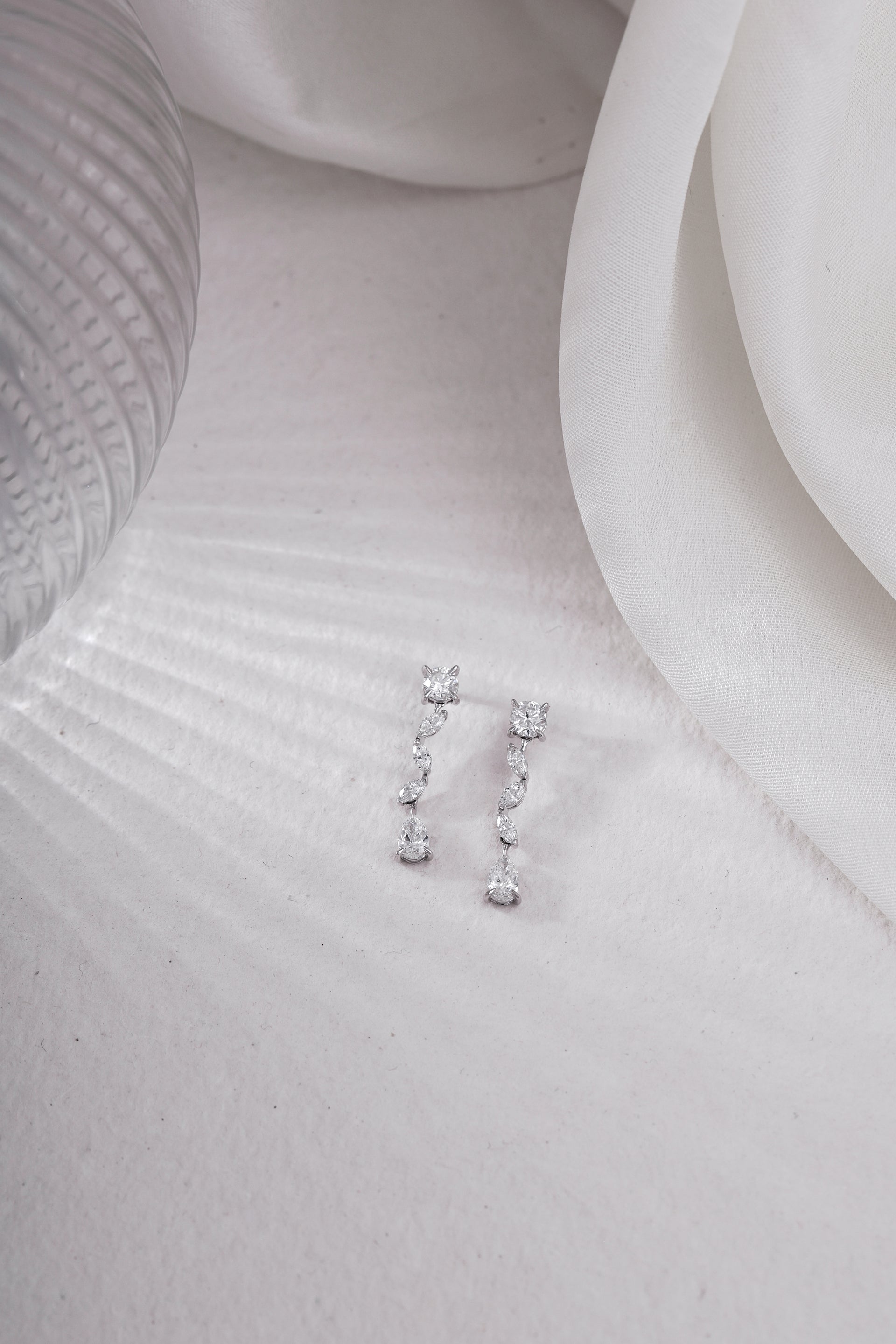 These elegant drop earrings feature a graceful swirl of sparkling stones, adding soft movement and shine. Perfect for special occasions or elevating your everyday style with timeless charm.At Araiya by Aza, we’re redefining luxury with purpose. Our lab-grown diamonds are IGI certified and set in BIS Hallmarked Gold. Each piece reflects timeless beauty, exceptional quality, and ethical craftsmanship.