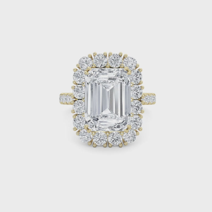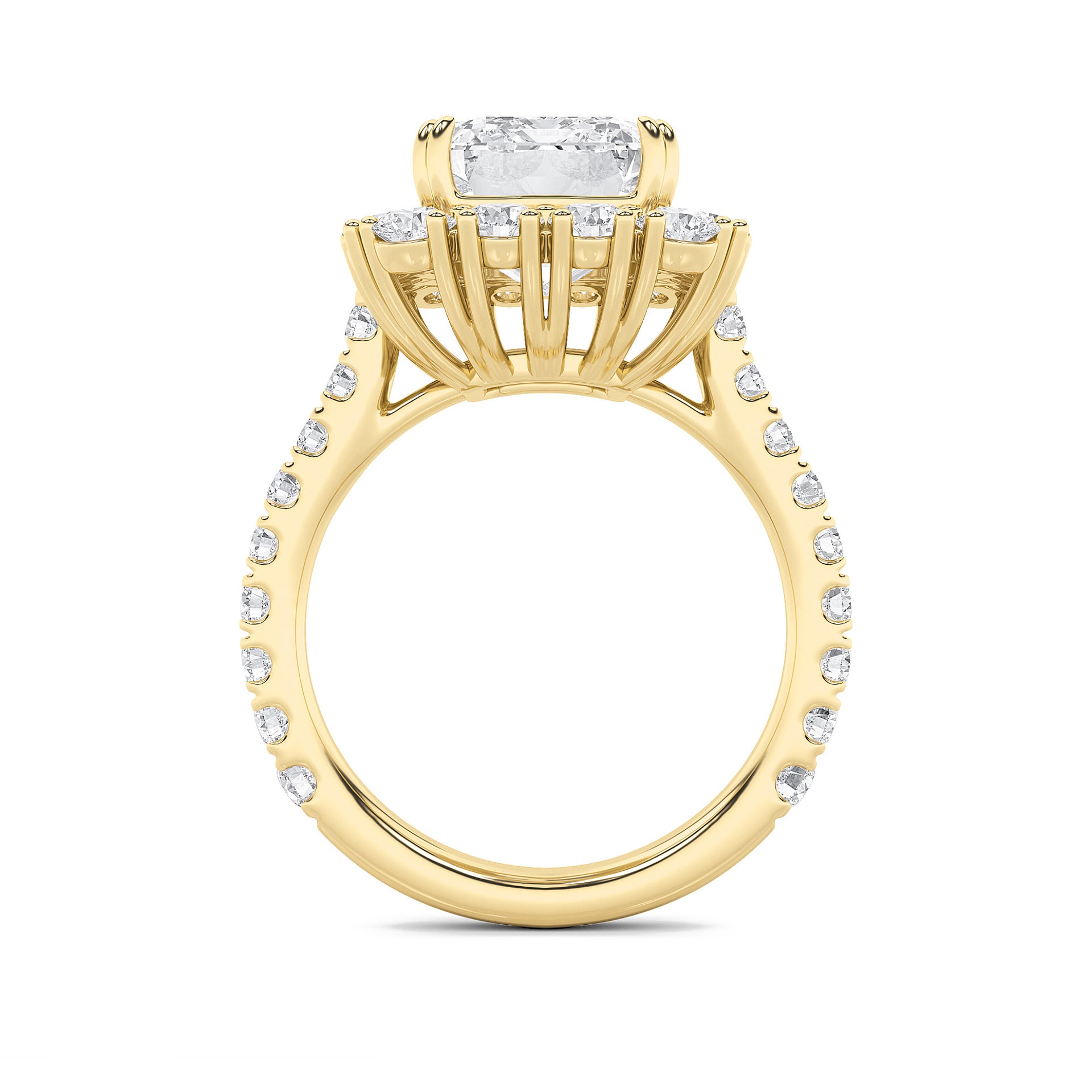 Designed as a modern heirloom, this ring features a cushion-cut centerpiece framed by round diamonds in an elevated halo. Its graceful silhouette embodies enduring love, ideal for proposals, anniversary toasts, or celebratory soirées.