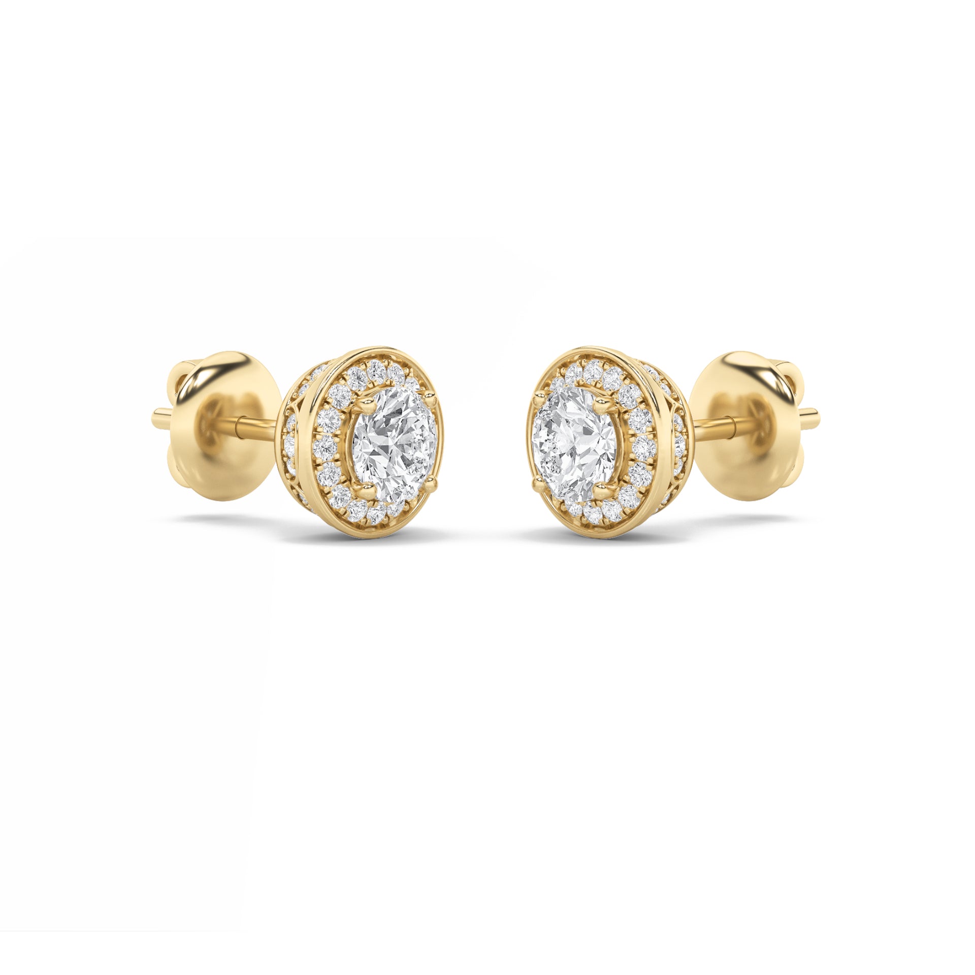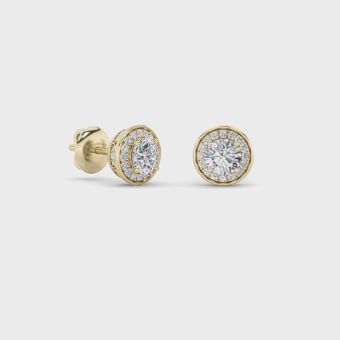 An ode to elegance, each earring features a luminous round diamond embraced by a halo of fine pavé stones. Designed for heirloom beauty, they balance grace and sparkle, creating a versatile piece for both everyday sophistication and special occasions.