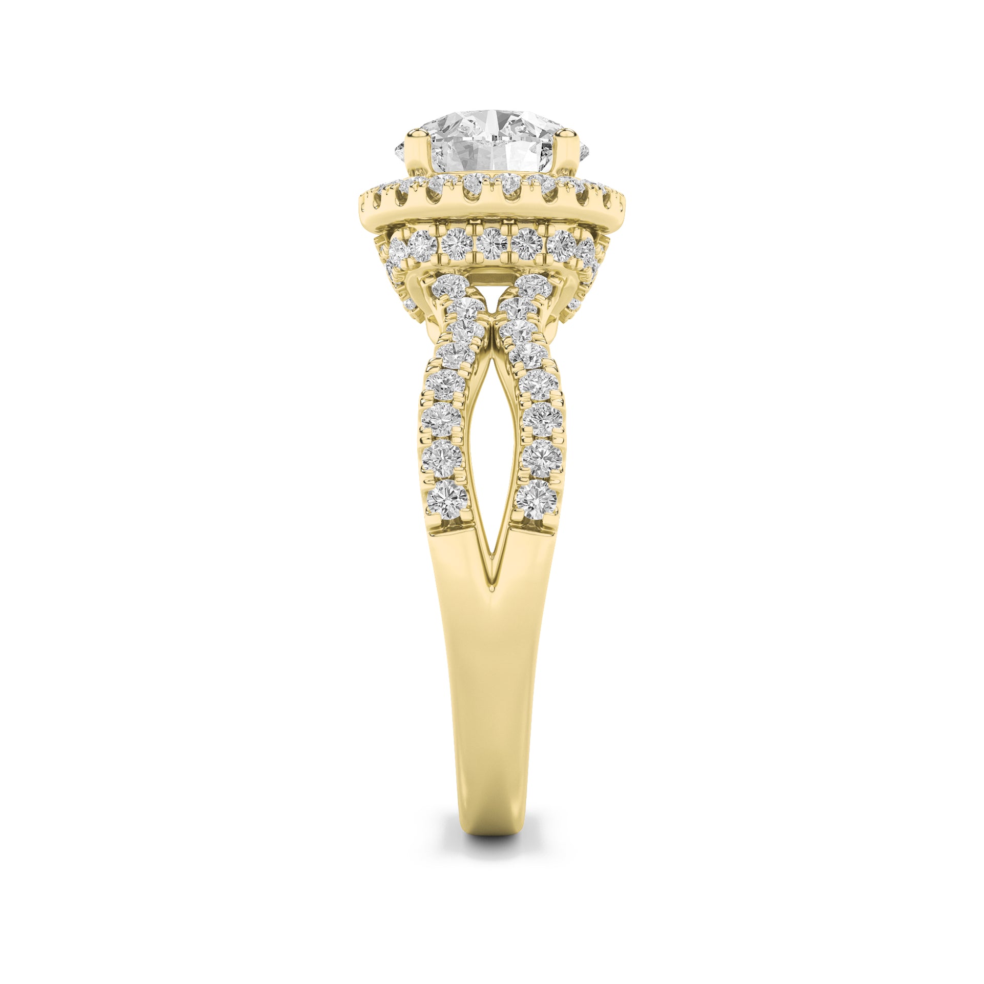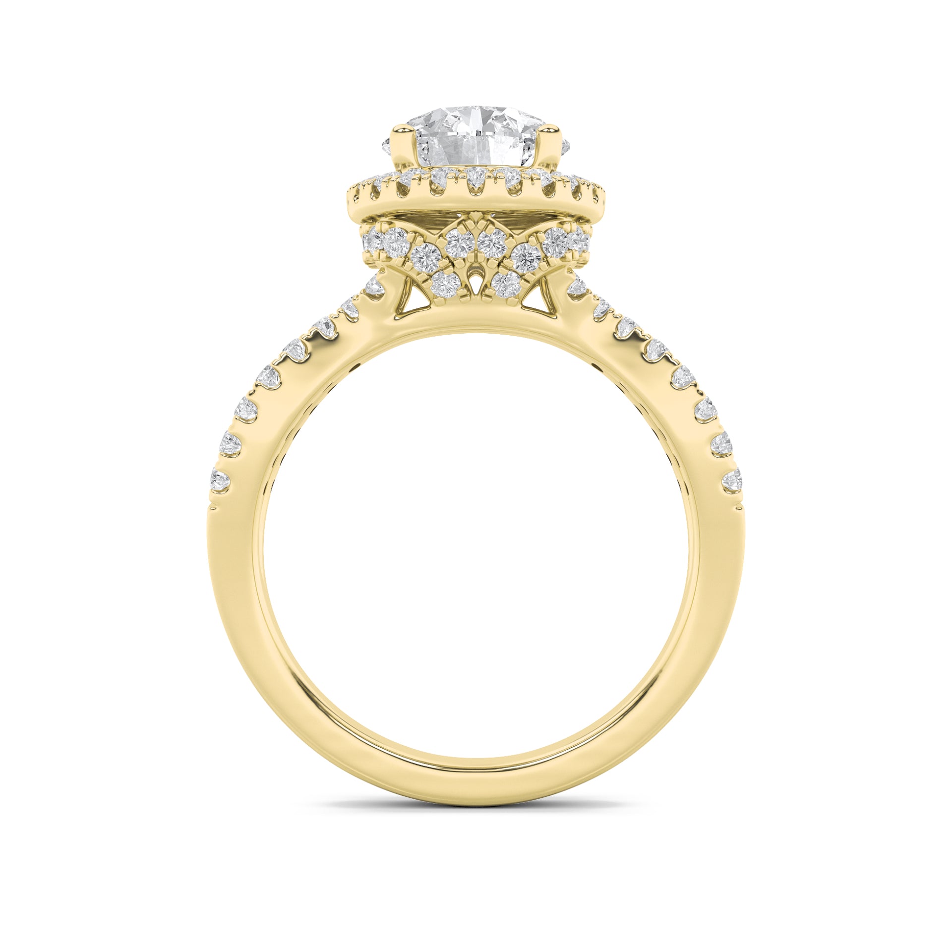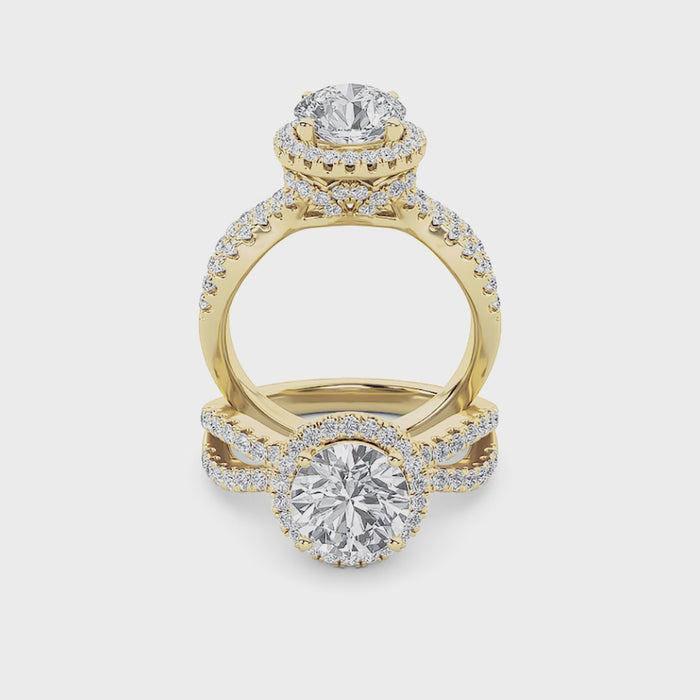 At the heart of this ring rests a solitaire, embraced by a gentle halo of pavé diamonds, radiant yet tender. The split shank flows like two paths meeting as one, a symbol of love’s union. Designed for proposals, promises, and forever after, it whispers devotion in every detail.