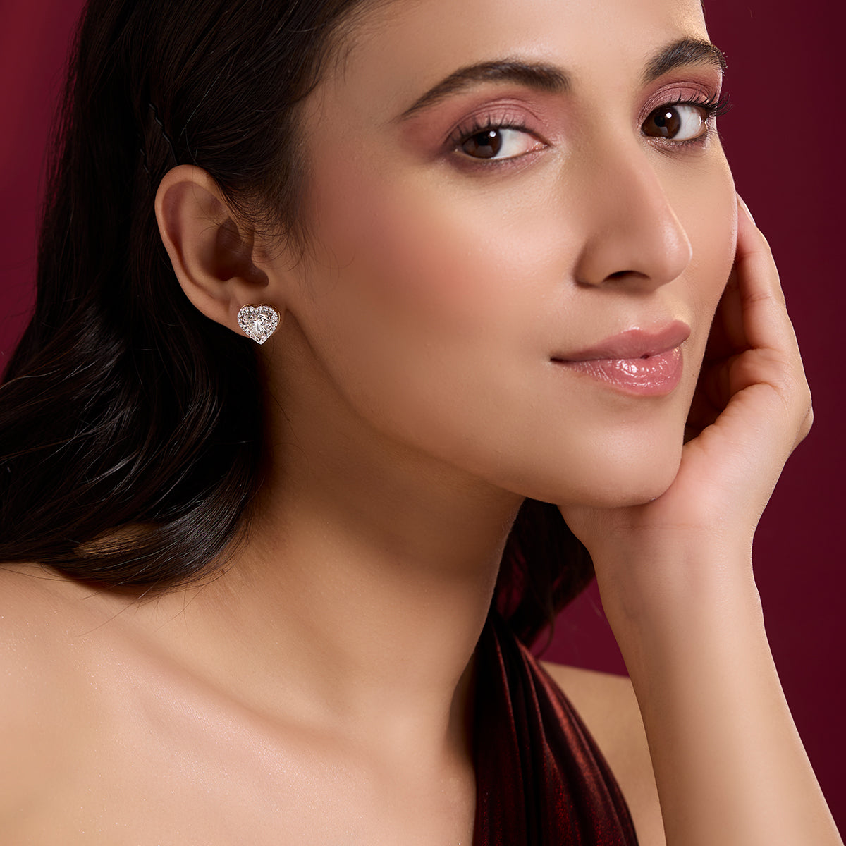 Featuring dazzling heart-shaped diamonds surrounded by a delicate halo, these earrings capture romance and radiance in one timeless design. Crafted to sparkle with emotion, these heart-shaped diamond studs are encircled by fine pavé halos, creating a silhouette of timeless love.