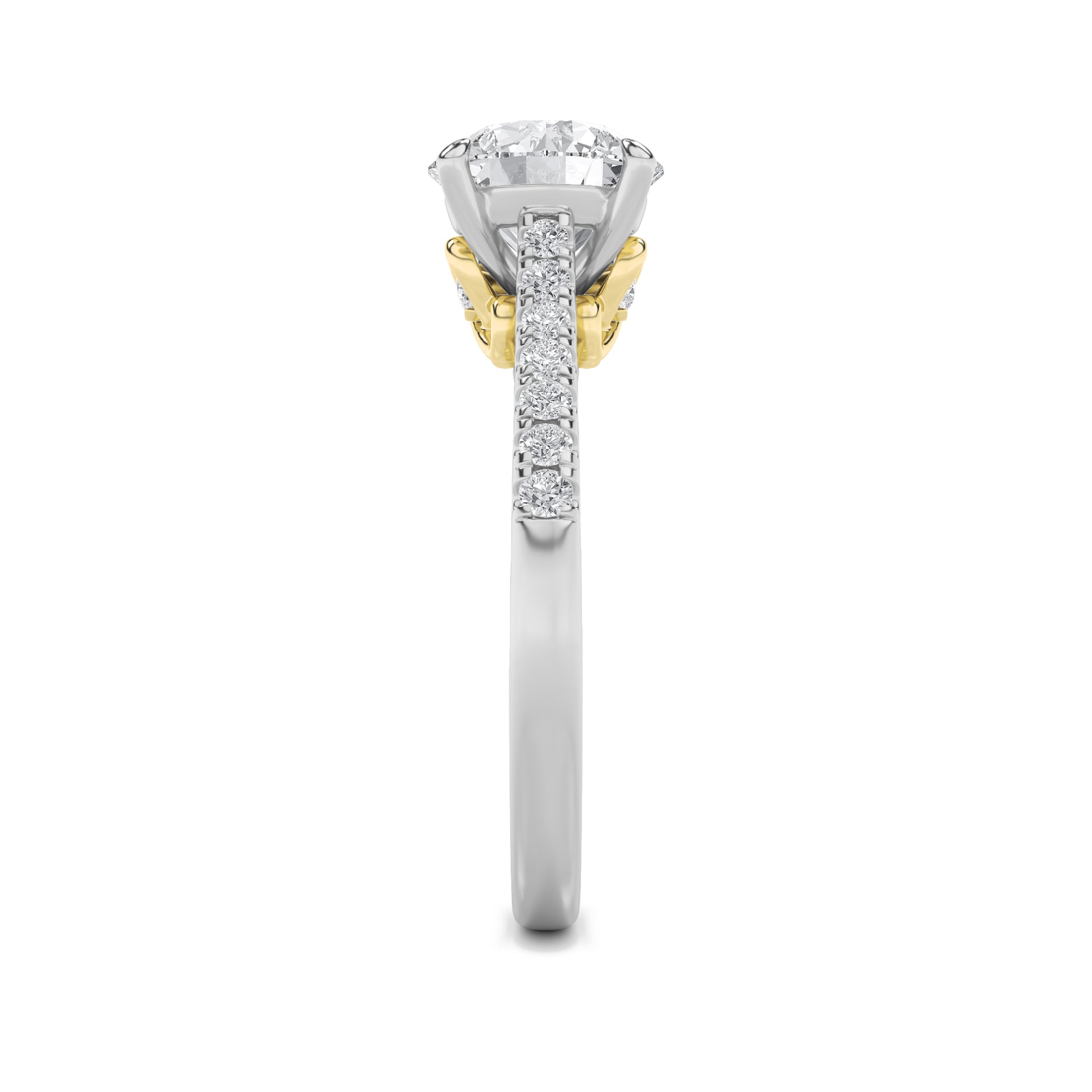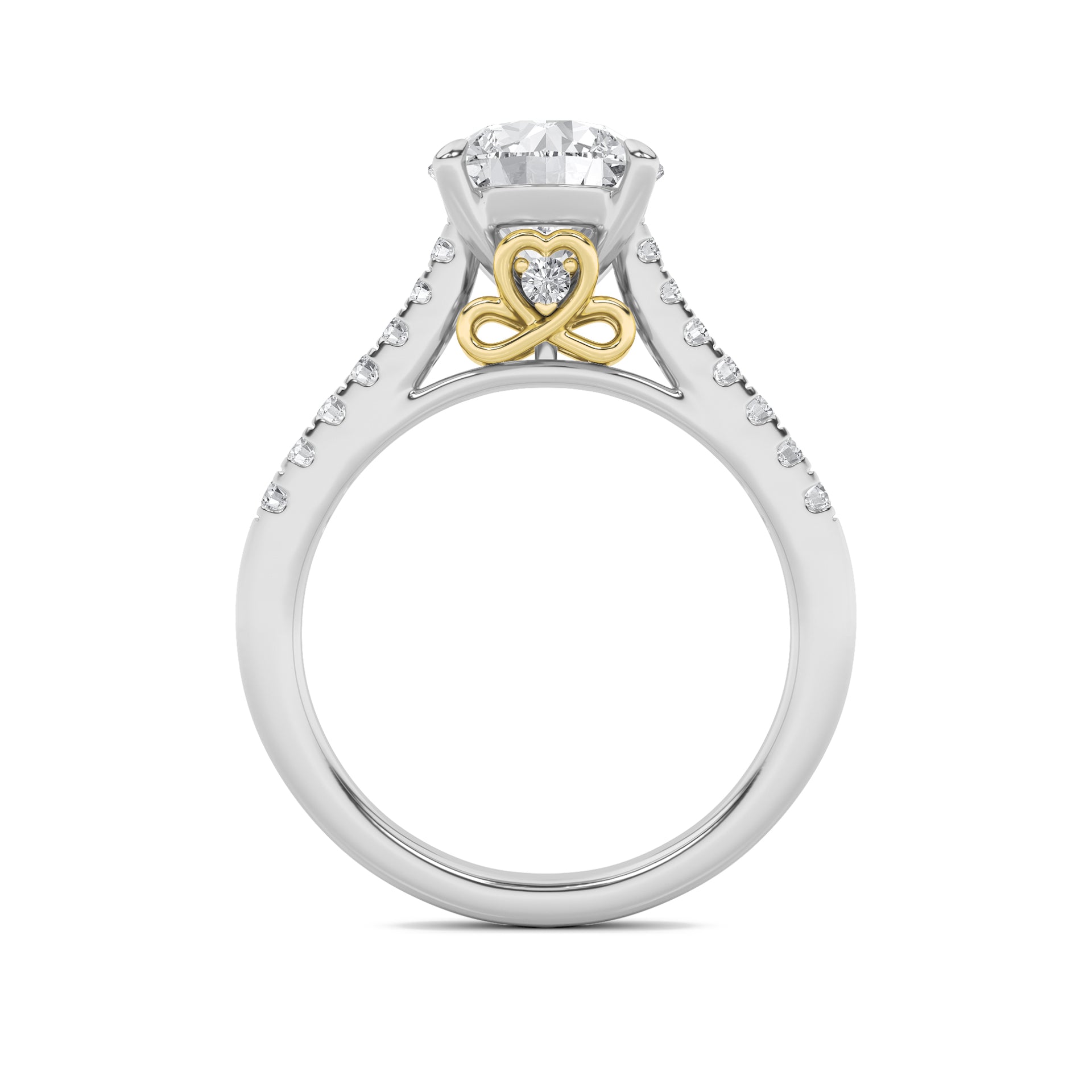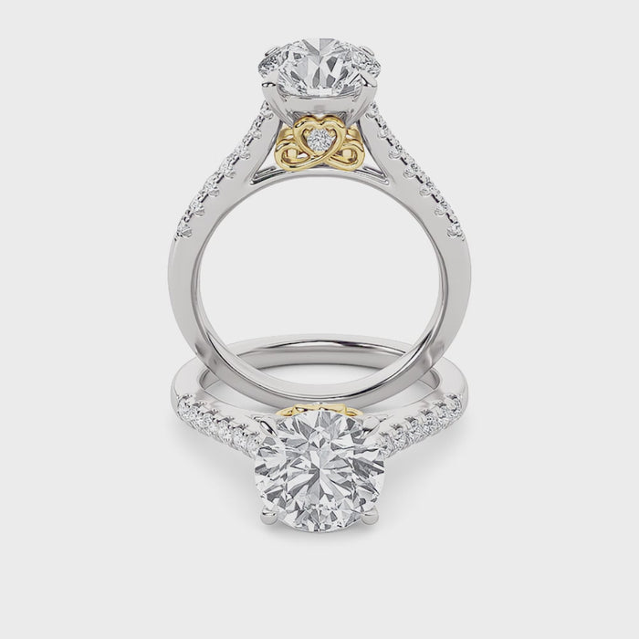 Commanding yet refined, the round solitaire dazzles as pavé stones light the band with brilliance. Beneath the crown, a heart set with a diamond reveals an intimate secret of devotion. Crafted for proposals, anniversaries, or celebrations of self, it makes a statement on its own or stacked in layered luxury.