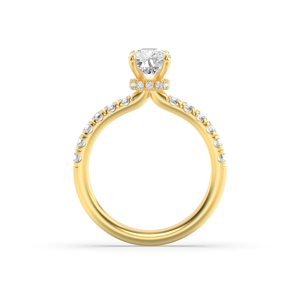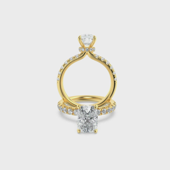 Cushion brilliance, glowing like captured starlight, rests above pavé fire. It speaks to romance that is tender yet eternal, perfect for marking life’s most meaningful chapters. A piece that moves from everyday chic to statement elegance with ease.