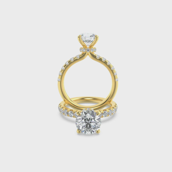 Refined artistry meets modern wearability in this round solitaire ring framed by pavé accents. Inspired by romance and crafted for everyday icons, it transitions seamlessly from heartfelt proposals to life’s daily inspirations.