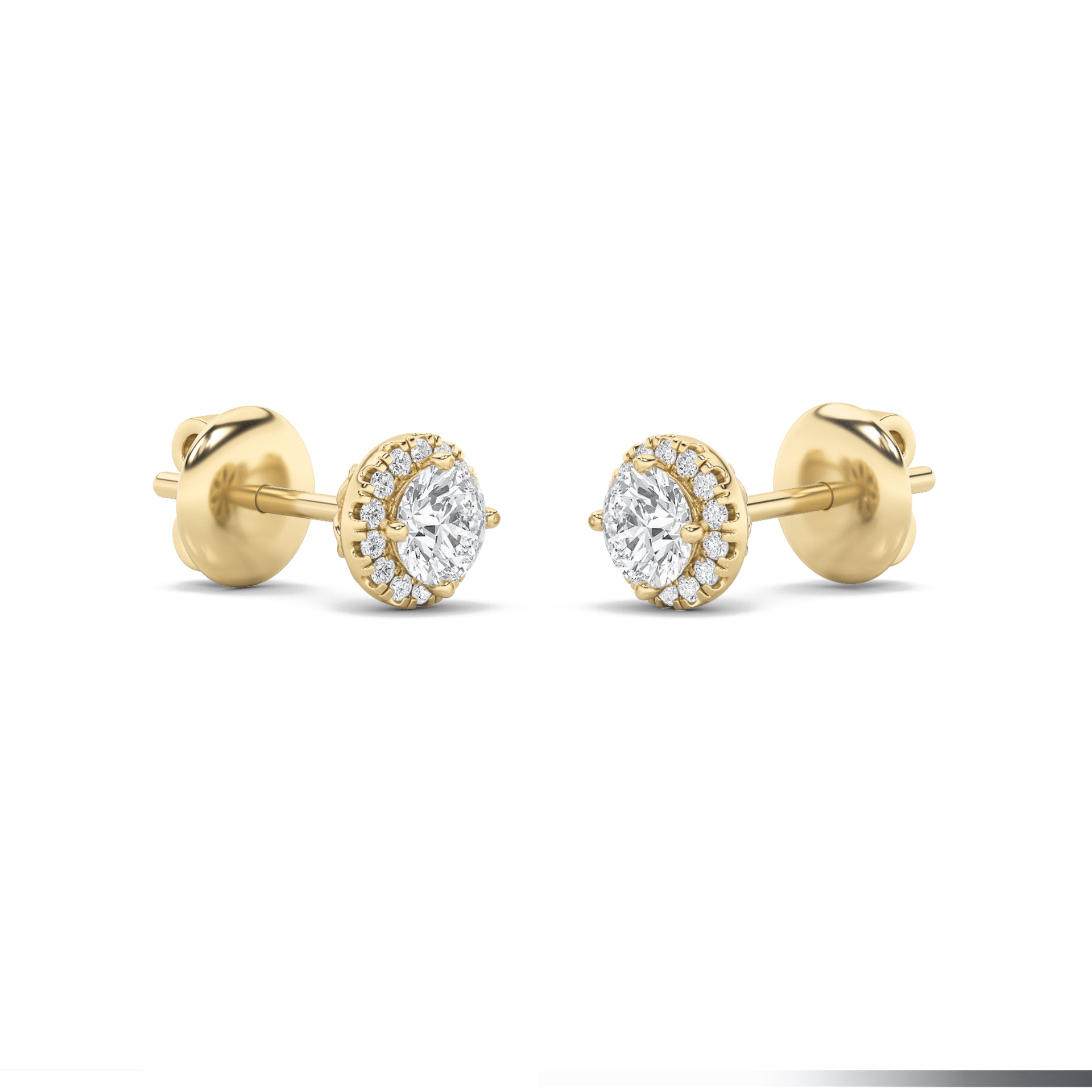 Light dances around the round diamond as its halo glimmers with fire, creating an endless shimmer of quiet luxury. Balanced and timeless, these studs are crafted for milestones, meaningful celebrations, and daily elegance, offering brilliance that feels both intimate and unmissable.