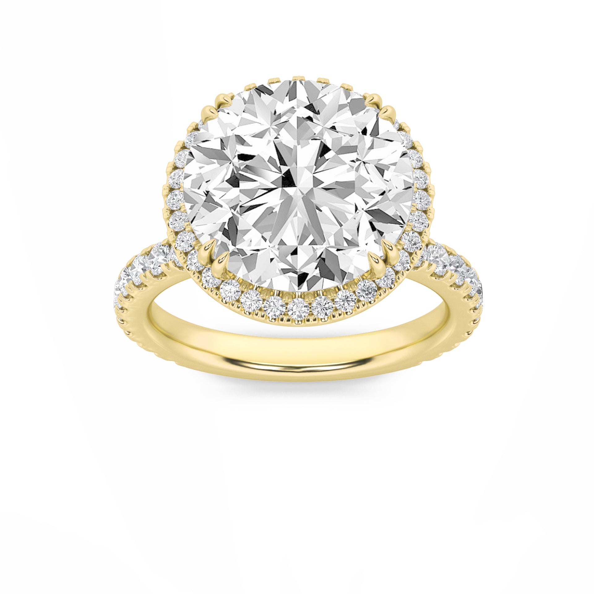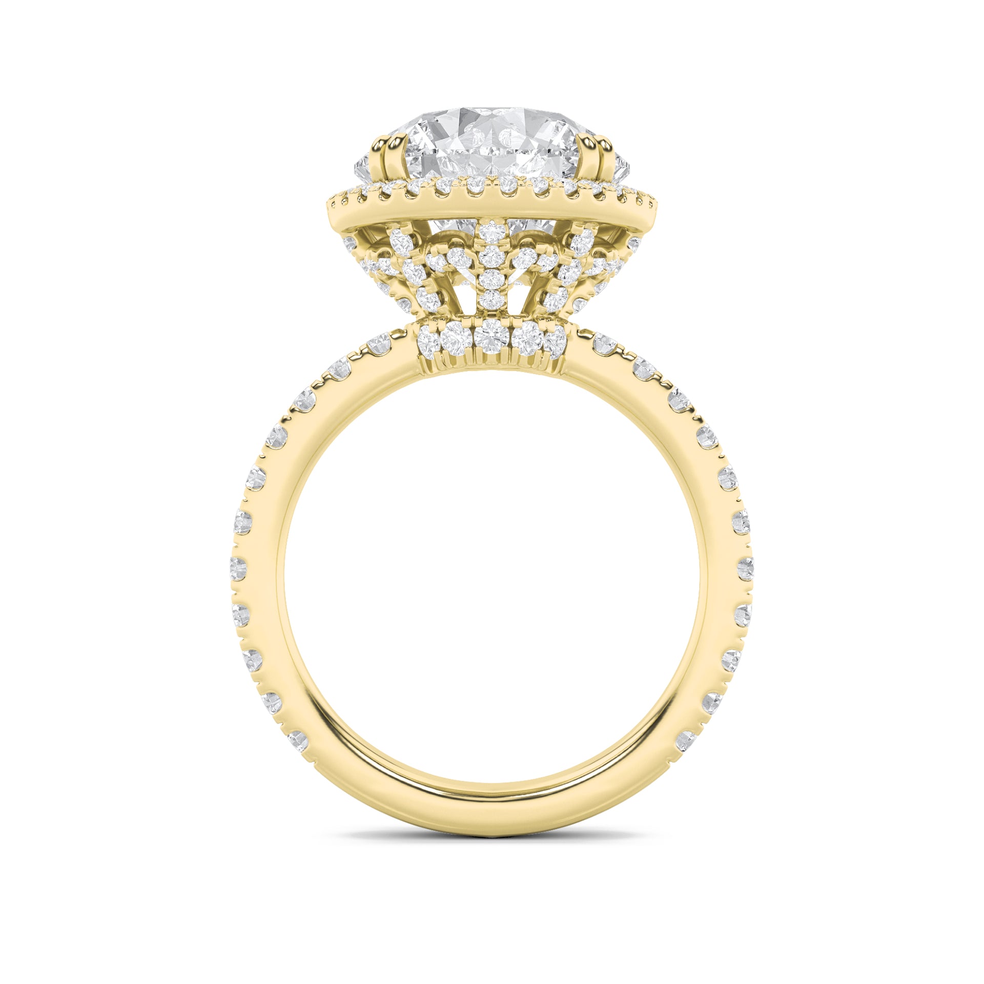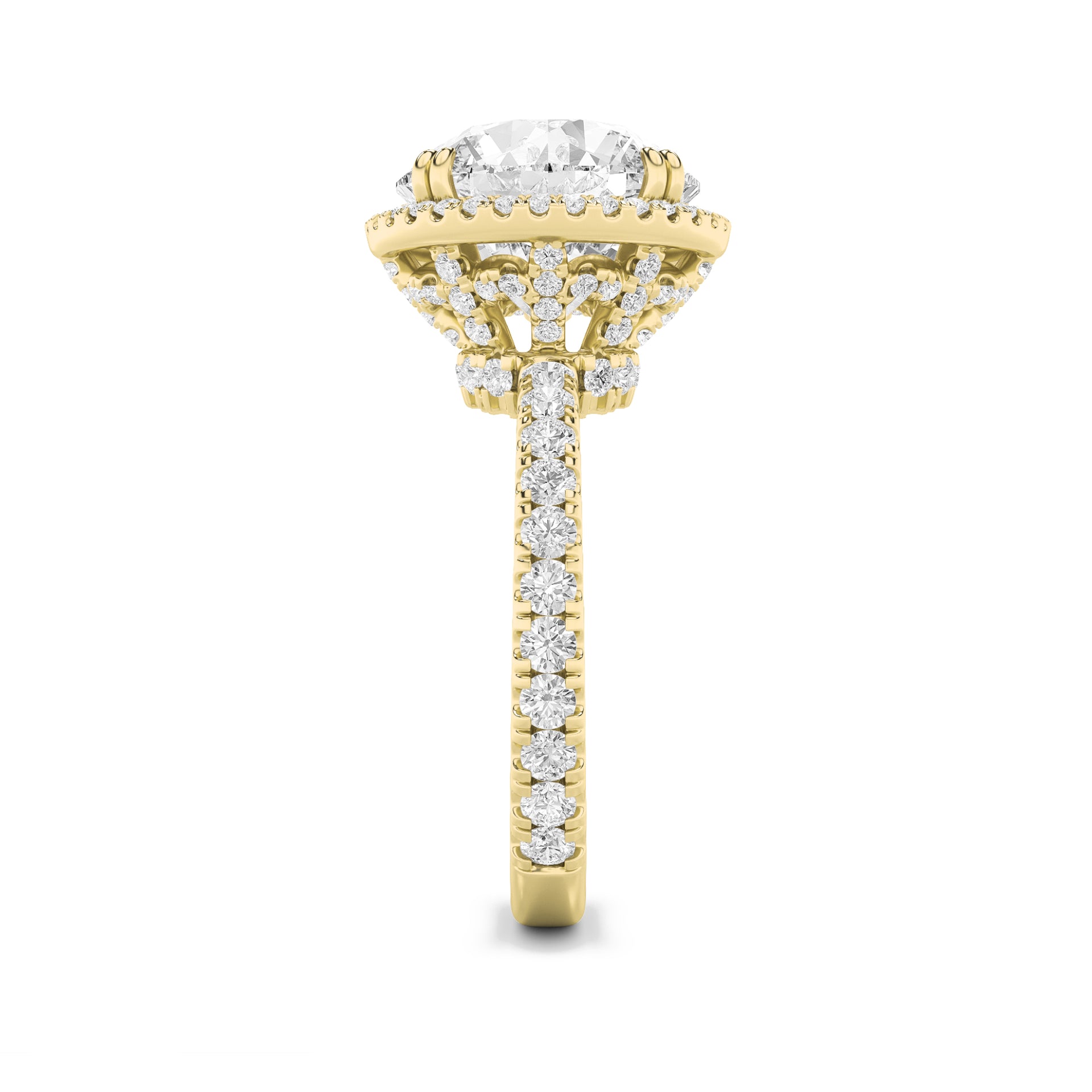 A celestial vision of brilliance, this ring features a radiant round-cut diamond encircled by a halo that magnifies its fire. Capturing the essence of romance and artistry, it is designed to shine as brightly as the love it represents.