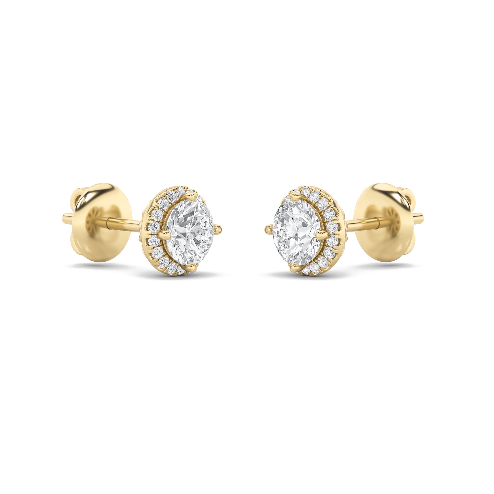 Orbiting halos frame the round brilliance like stars circling the moon, amplifying light with every turn. These studs embody celestial allure, designed to move gracefully from sunlit mornings to glittering midnight celebrations with timeless radiance.