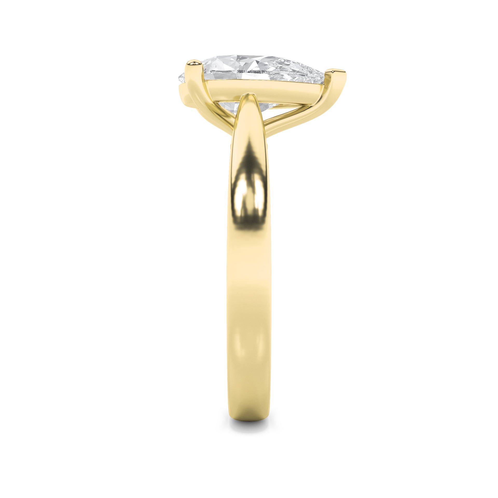 The sleek band, echoing willow’s flowing strength, embraces a pear solitaire that glows with effortless charm. Designed for women who balance romance and modernity, it elevates daywear simplicity and transforms seamlessly into evening allure.
