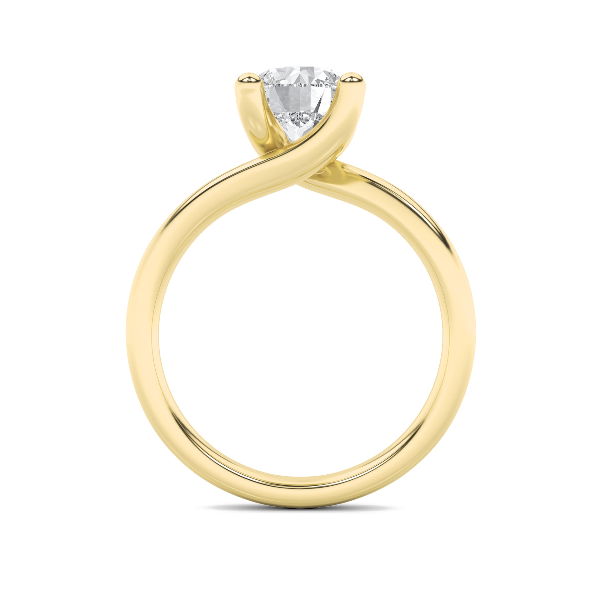 Fluid lines spiral into modern sculpture, crowned with a round solitaire that radiates eternal light. A jewel born of contemporary artistry and timeless romance, it transforms from understated proposal ring to fashion-forward statement with ease.