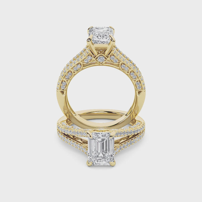 Emerald brilliance rests within an embrace of pavé light, a silhouette that balances boldness with grace. More than adornment, it is an heirloom in the making, destined to carry forward stories of strength, love, and celebration.