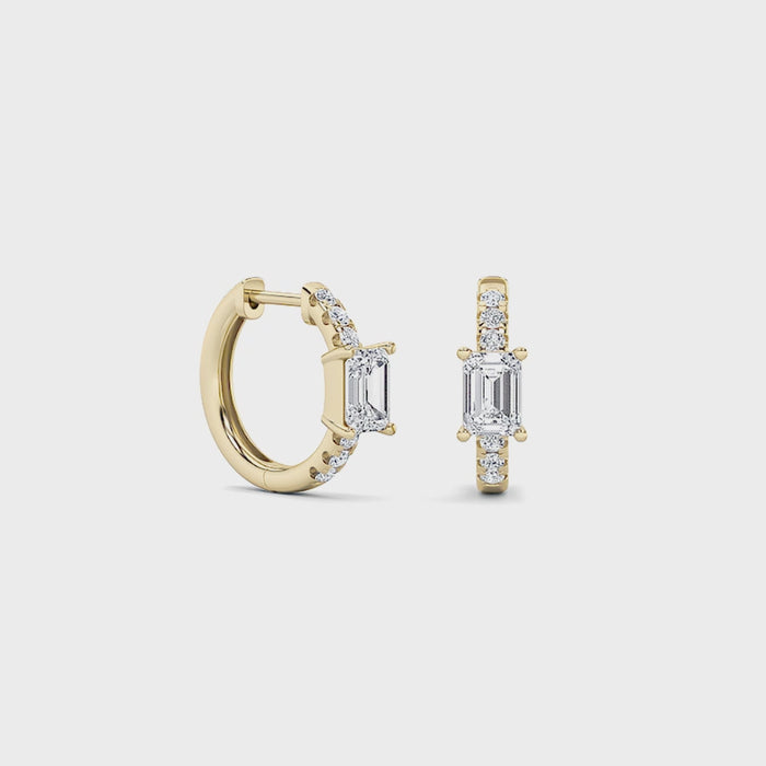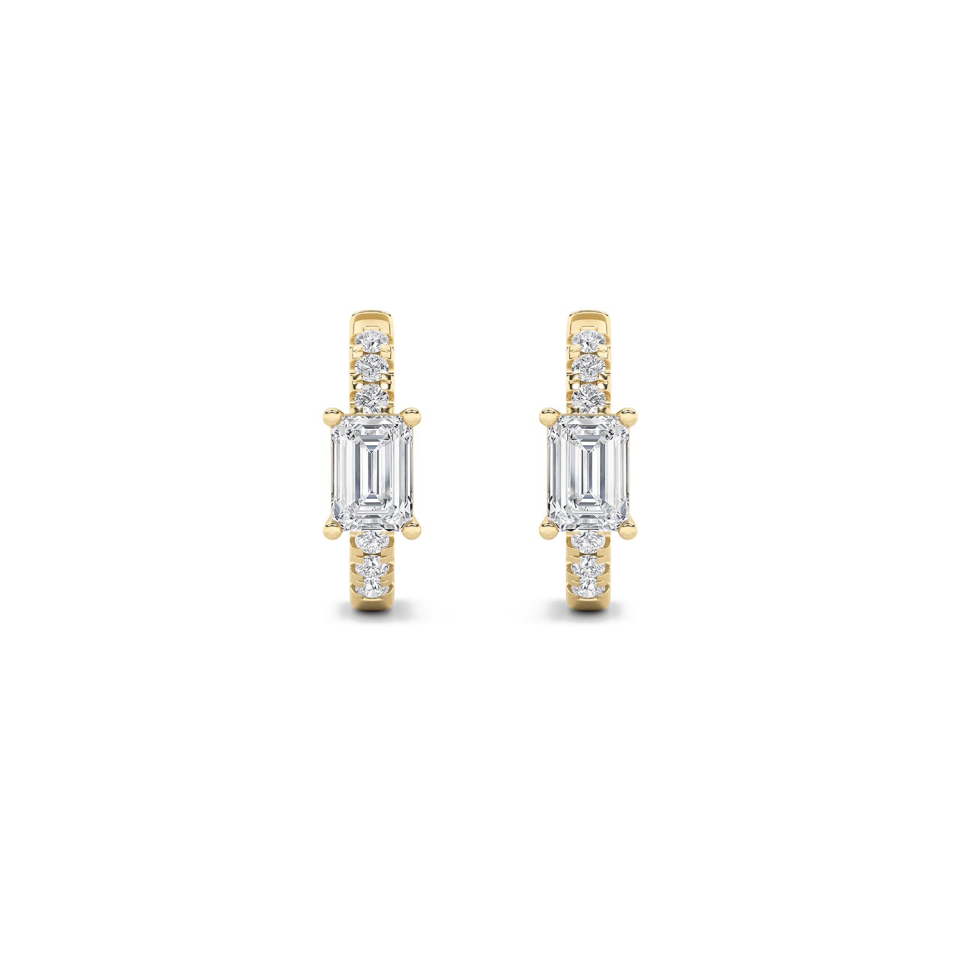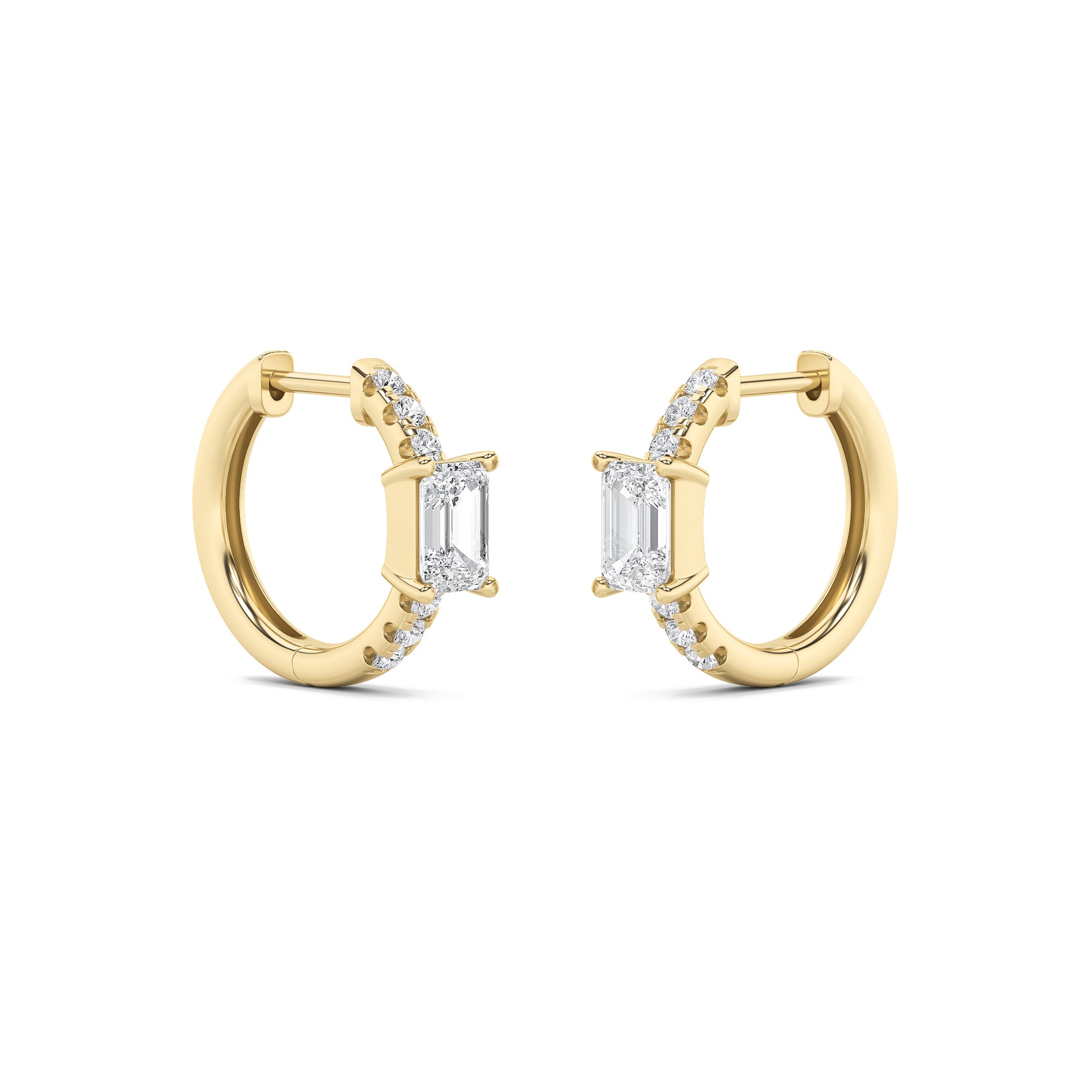 An emerald crowns each hoop, its verdant hue glowing with quiet intensity while pavé accents dance around it. Romantic yet sophisticated, these earrings evoke timeless devotion, making them perfect for milestone moments or unforgettable gifting.