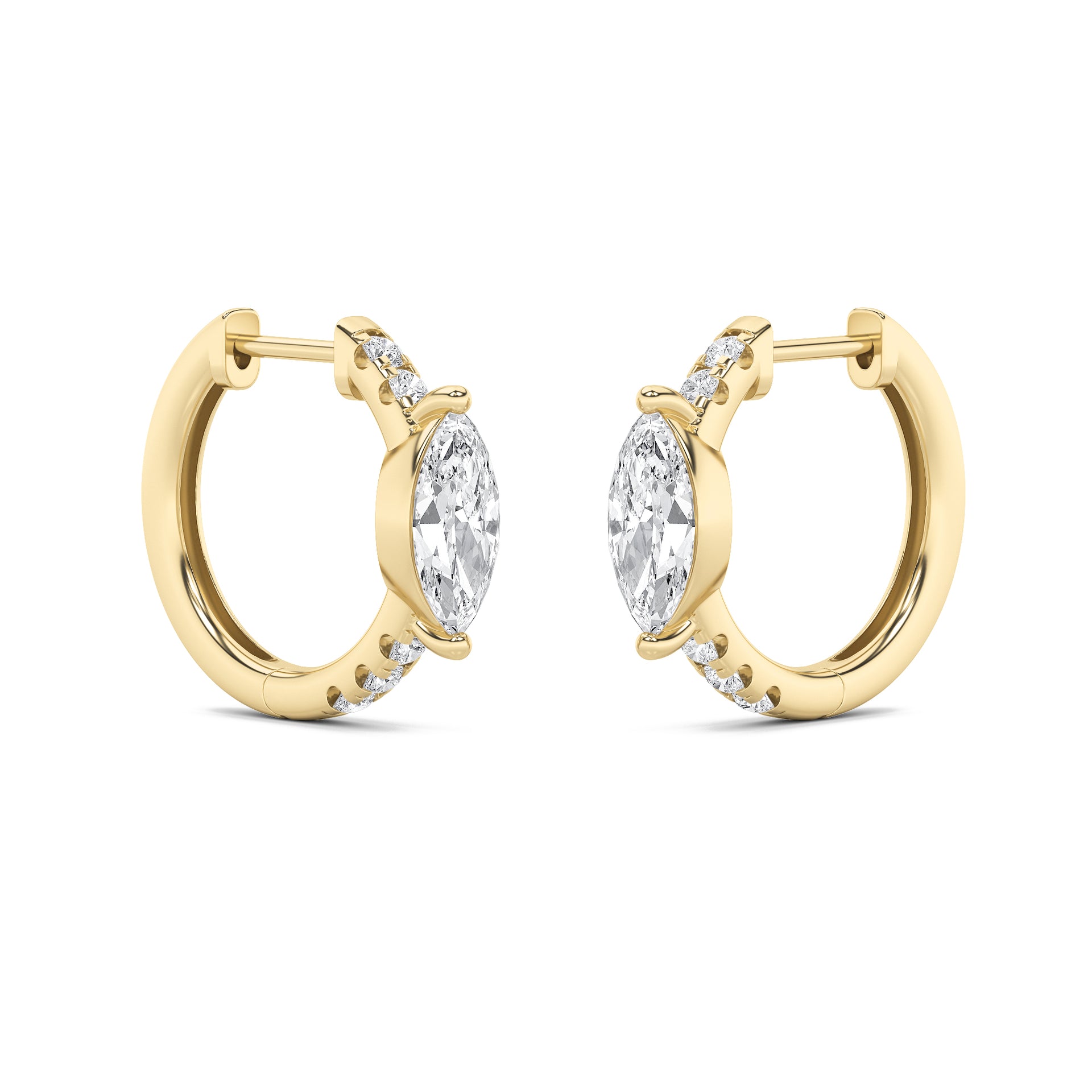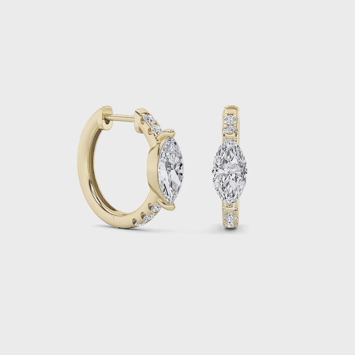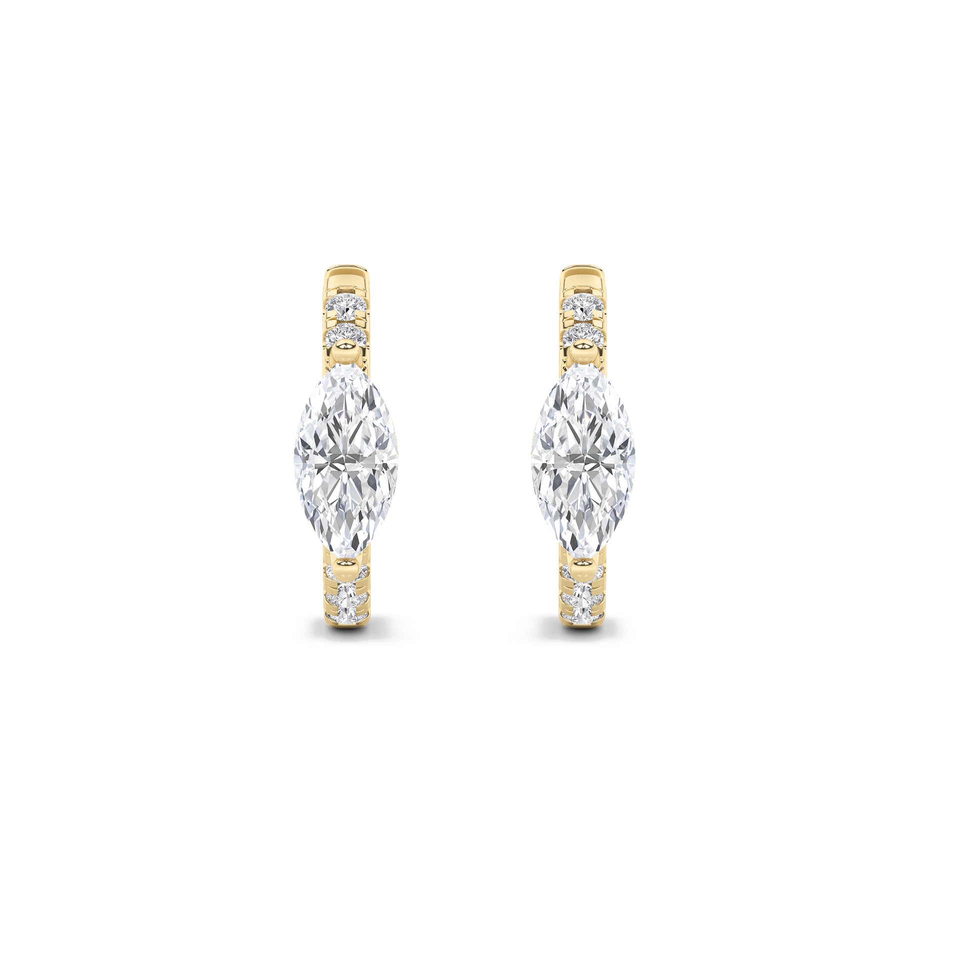 A marquise diamond reigns at the heart of each hoop, its elongated brilliance framed by pavé accents that catch the light like whispers of stardust. Chic yet striking, these earrings blur the line between day and night, slipping as effortlessly into boardroom style as they do into candlelit evenings.