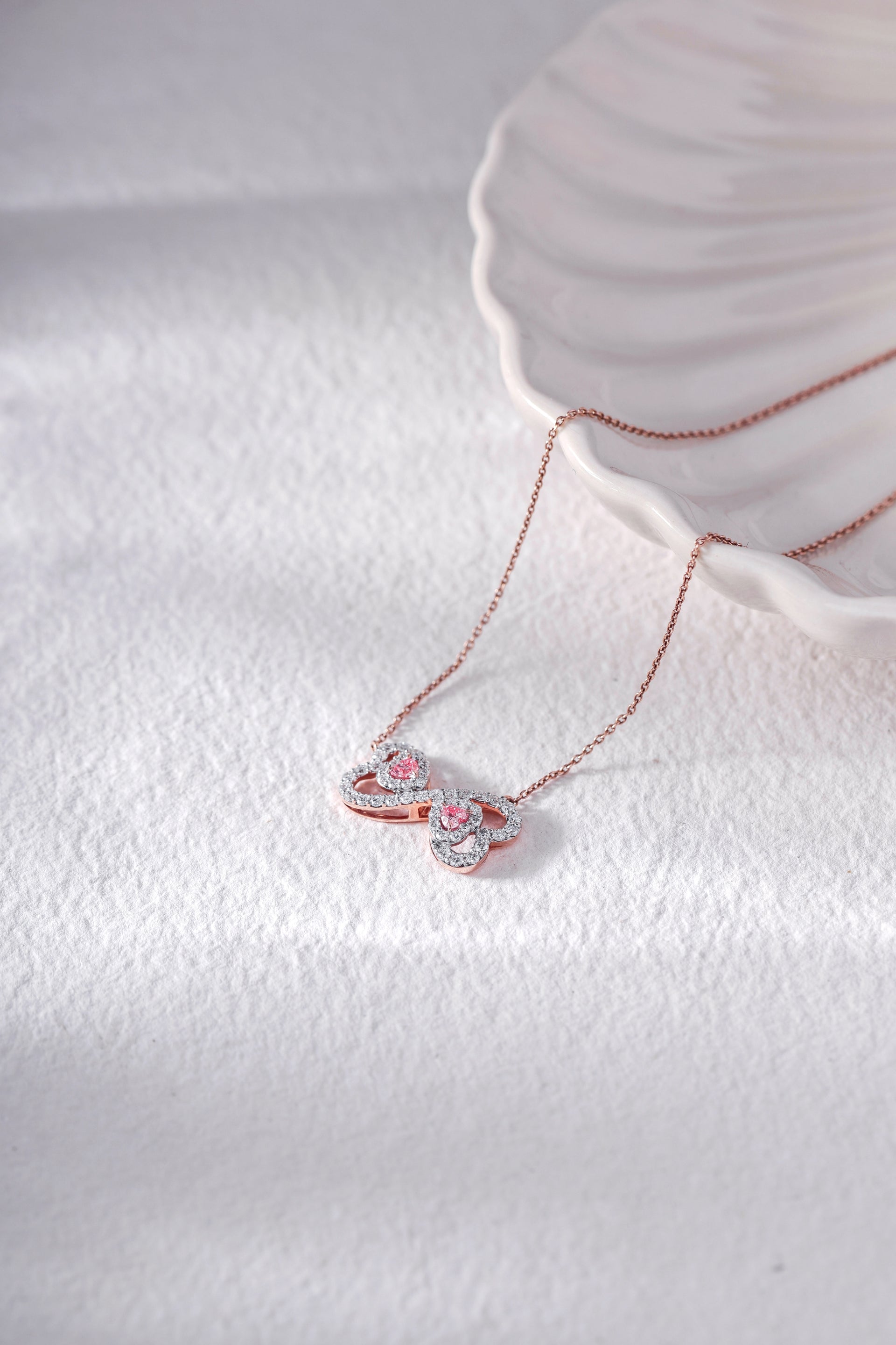 Charming and full of heart, this pendant celebrates the sweet bond of love and friendship. Designed with twin open hearts including delightful pink center stones that add a playful pop of color. Whether as a thoughtful gift or a personal keepsake, this pendant makes every moment shine with affection.