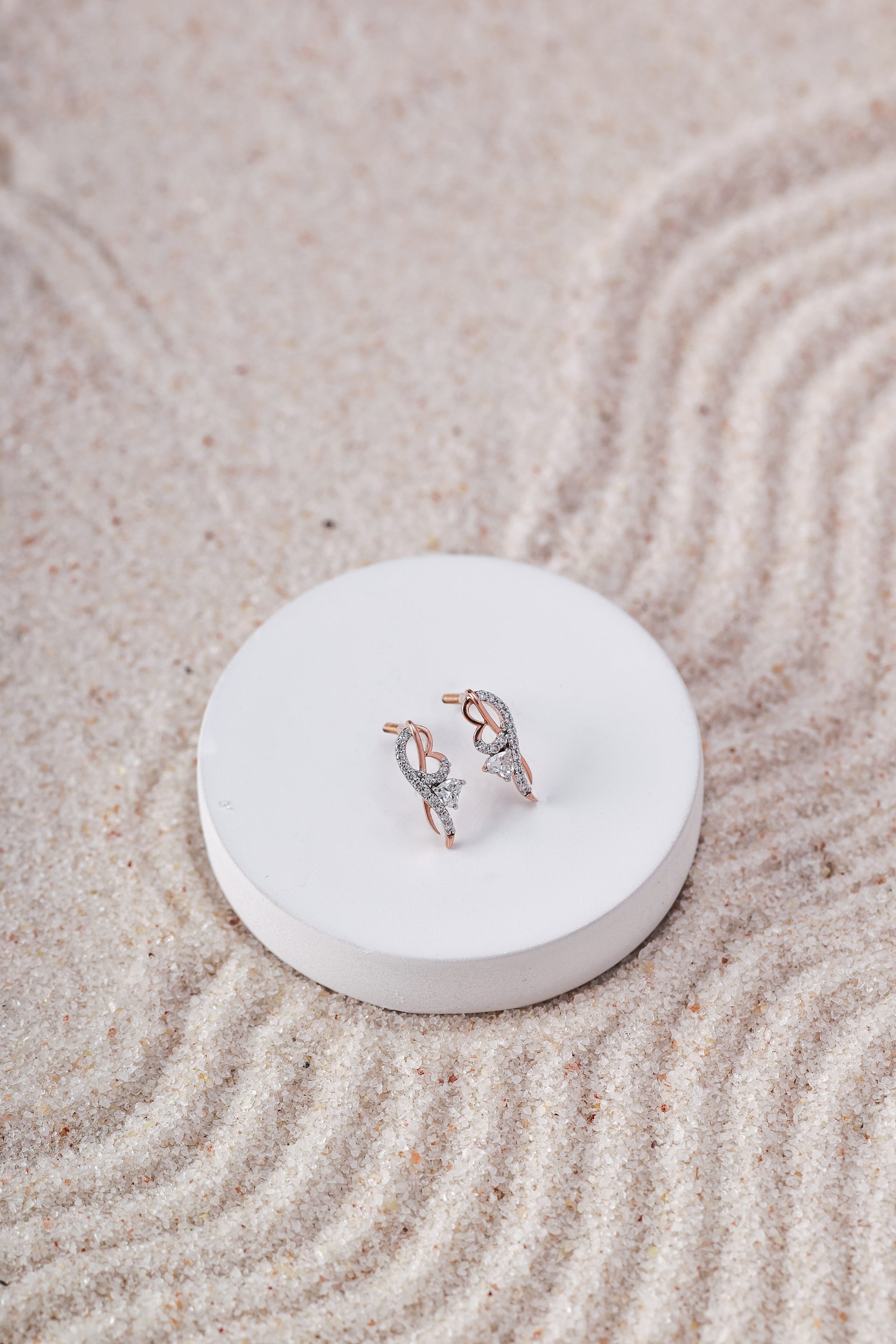 These delicate rose gold earrings blend classic shapes with modern movement. Accented with a heart-shaped lab-grown diamond and pavé-lined curves, they offer just the right amount of sparkle. A perfect balance of subtle glamour and timeless grace.